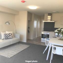 Built in 2018 in the popular Trinity Terraces, unit 314 is also known as flat 12/116 Stanmore Road. This 50sqm, 1-bedroom apartment is decorated in neutral tones and is warmed with a heat pump. It has open plan living/ kitchen, a great bathroom, and a double bedroom. The separate laundry has been cleverly tucked away. It had double glazed windows. Its rear position in the block is quiet and private away from road noise.