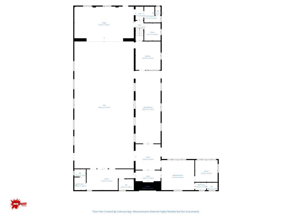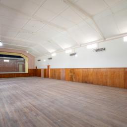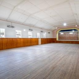The hall, at 430sqm, boasts multiple rooms including the main hall area with stage and backstage area, two smaller community meeting rooms, formerly used for childcare, a kitchen and 4 operating toilet areas. There are exits out of the building into a spacious outdoor area. The property is bordered either side by presently operating local businesses.