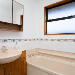 • Family bathroom complete with bath, shower, and vanity. Practical touches, such as a separate laundry and toilet, add everyday convenience.
