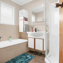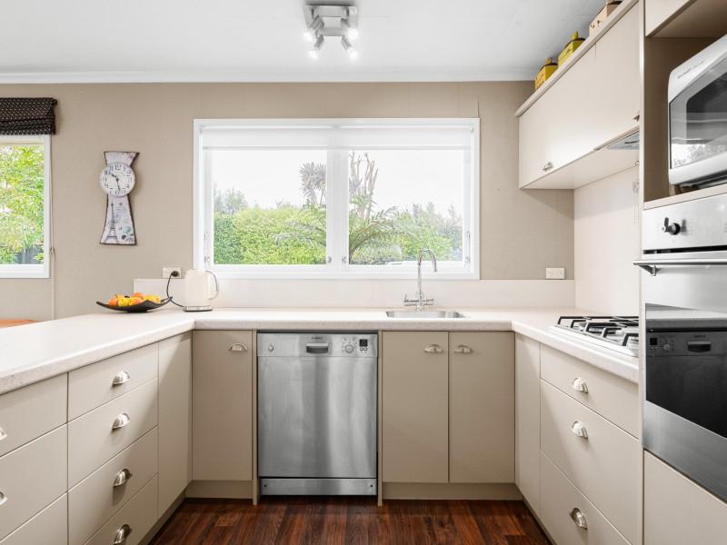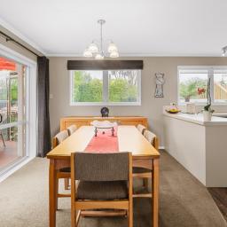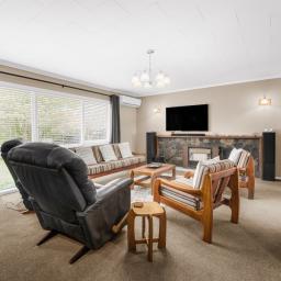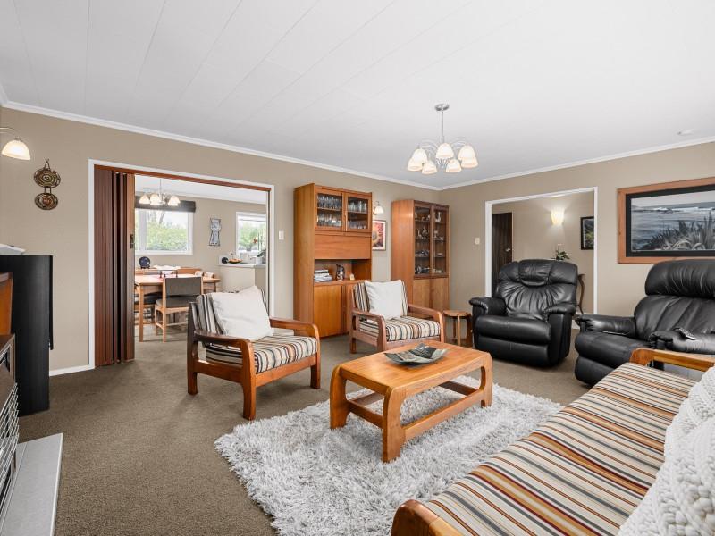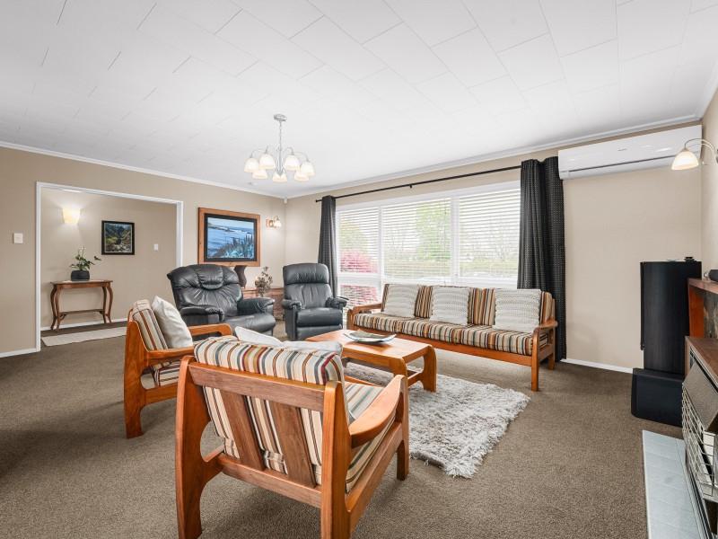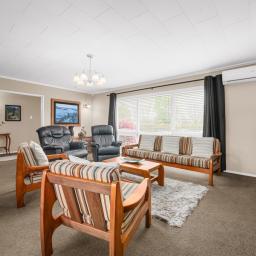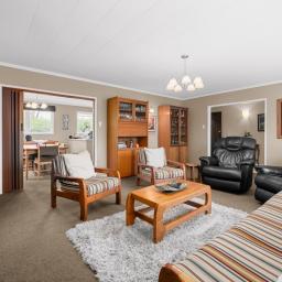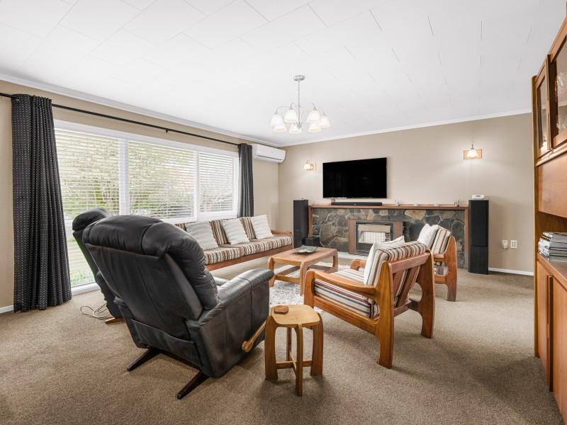 Inside, you’ll find a spacious living room filled with natural light — the perfect place to relax with the family or entertain guests. A gas fireplace provides a cosy focal point, ensuring comfort throughout the cooler months and a heat pump for year round comfort. The adjoining dining area flows into a modernised kitchen, complete with excellent storage and bench space, making meal preparation both practical and enjoyable. Neutral tones throughout create a fresh backdrop, ready for you to add your own style. The home also offers three well-proportioned bedrooms, all serviced by a family bathroom, while a separate laundry adds to the everyday convenience.