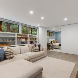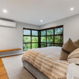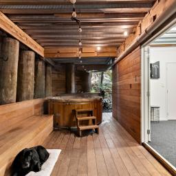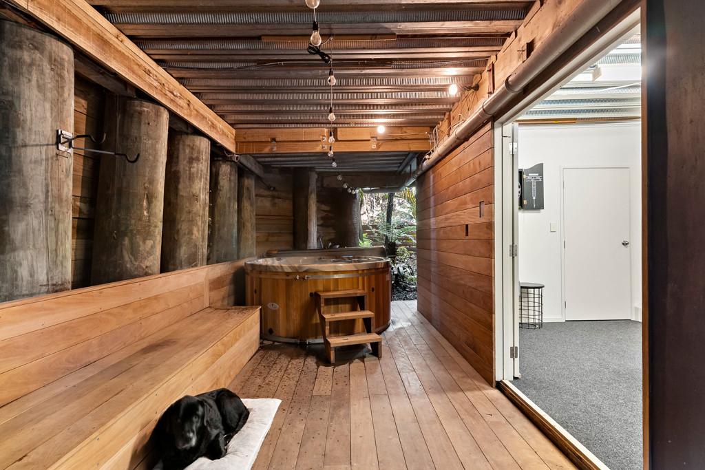 Upstairs, the master suite is a true retreat. Wake to uninterrupted bush views and enjoy the ultimate in peace and privacy. Downstairs, the options are endless: four to five bedrooms, a separate office, and two spacious living areas plus an outdoor/indoor hot tub facility make this the perfect setup for big families, guests and working from home. The rumpus room has been utilised by the owners as the fifth bedroom.