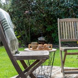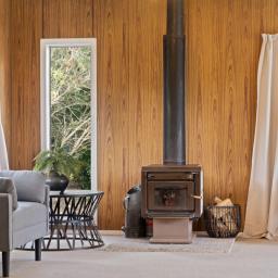 The open-plan kitchen and dining area flow into a cosy lounge warmed by a wood burner-perfect for those cooler evenings after