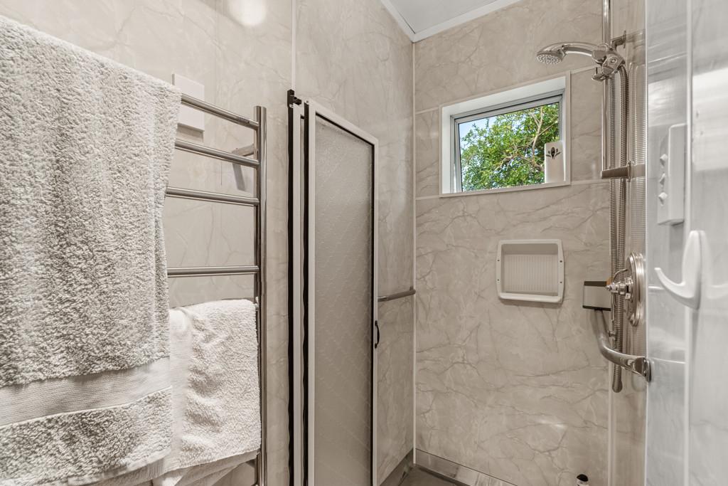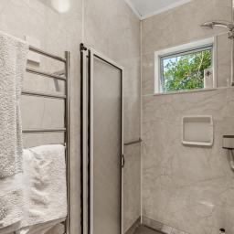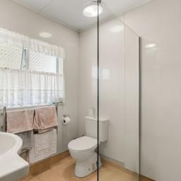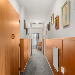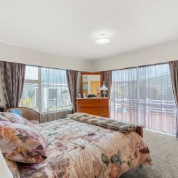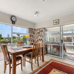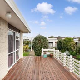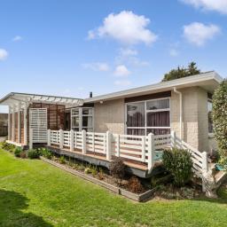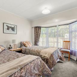 The main bedroom opens directly onto the deck through a ranch slider, creating an easy connection to the outdoors. All three bedrooms are doubles with wardrobes, and the two additional bedrooms are enhanced by charming bay windows that bring in excellent natural light. A well appointed family bathroom, plus a second bathroom, ensures the home is both practical and comfortable for everyday living. A large separate laundry completes the layout, and comfort is assured with insulation, a Mitsubishi heat pump, gas fireplace, and gas hot water.