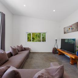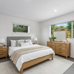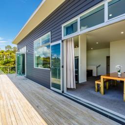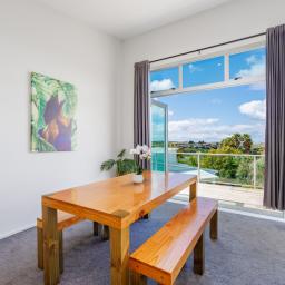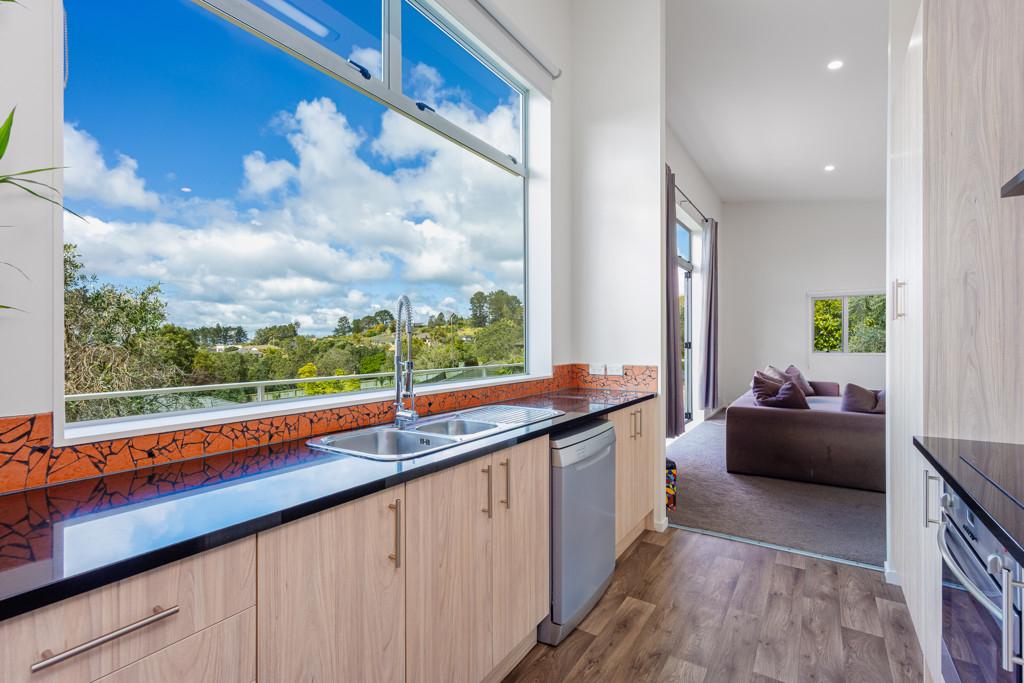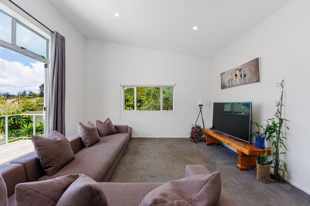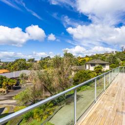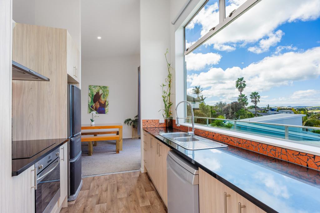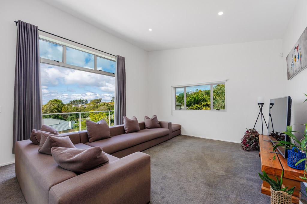 Elevated to capture sweeping views over the surrounding landscape, it boasts lofty ceilings that enhance the sense of space and fill the home with natural light, creating a warm and inviting environment year-round. Step outside through the taller-than-usual bi-fold doors onto the large, sun-drenched deck where you can enjoy morning coffee, weekend barbecues, or a quiet evening overlooking the beauty of Gulf Harbour.