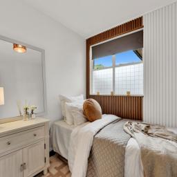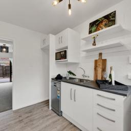 Step into a beautifully appointed living room that oozes a warm atmosphere, perfect for relaxing or entertaining guests. The kitchen features new, contemporary cabinetry and allows for easy interaction with guests while cooking. The spacious bedroom offers a serene escape, complete with tasteful home decor and a peaceful ambience.
