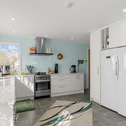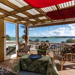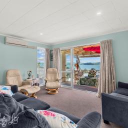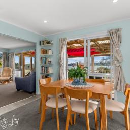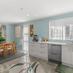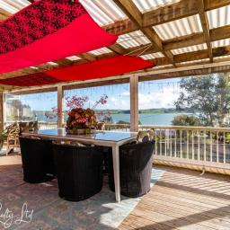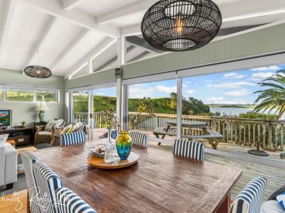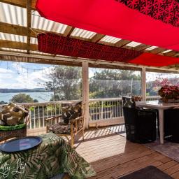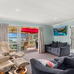 At the heart of the home is a brand-new kitchen with generous cabinetry and bench space, flowing seamlessly into open-plan dining and living. Step out onto the large covered deck, complete with canvas curtains for year-round enjoyment, and soak up stunning water views.