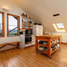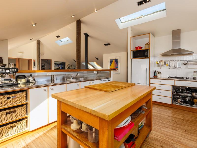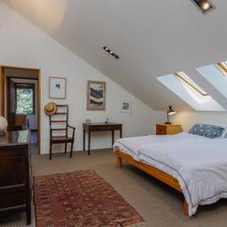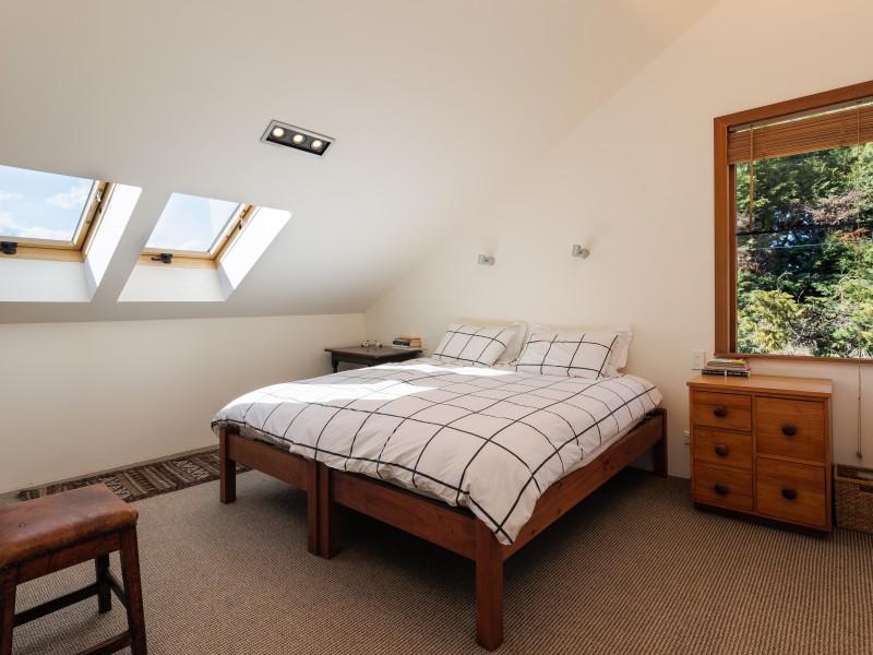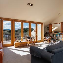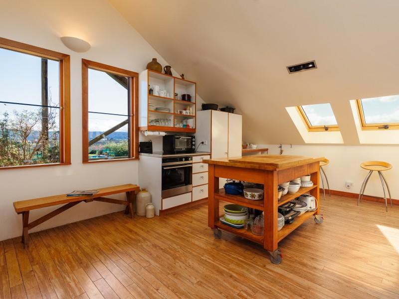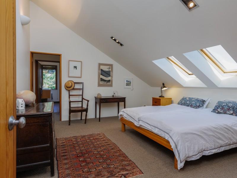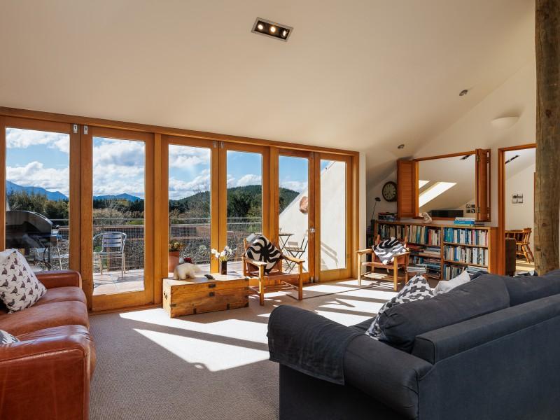 The deep straw bale walls of this appealing country home create an atmosphere of peace and quiet, tranquillity and warmth. Extensive views over the garden to the mountains beyond are enjoyed from the second storey which boasts three bedrooms and most of the living. Another building site has also been included in the planning.