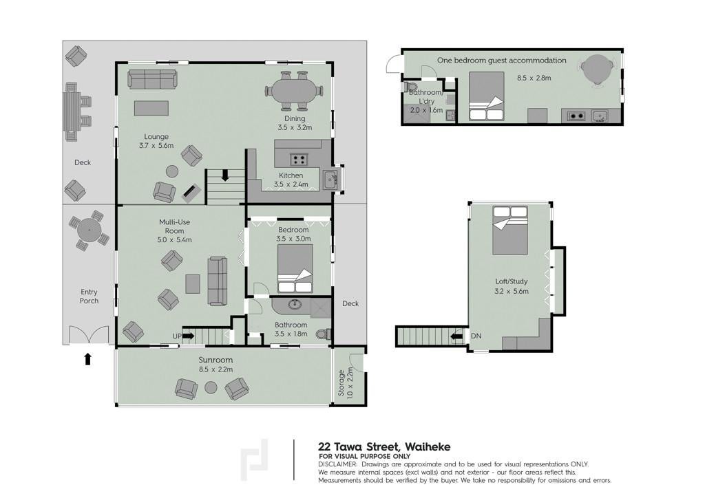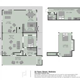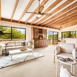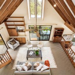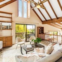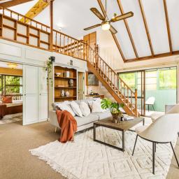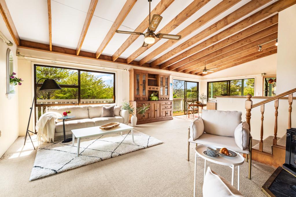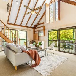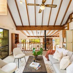 Set on a generous 1330 sqm (approx.) section, the one-bedroom plus loft/study home is complemented by self-contained guest accommodation - ideal for hosting visitors or generating extra income. Soaring ceilings, abundant natural light, and effortless indoor-outdoor flow onto expansive decks, enhancing the feeling of space.