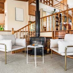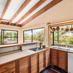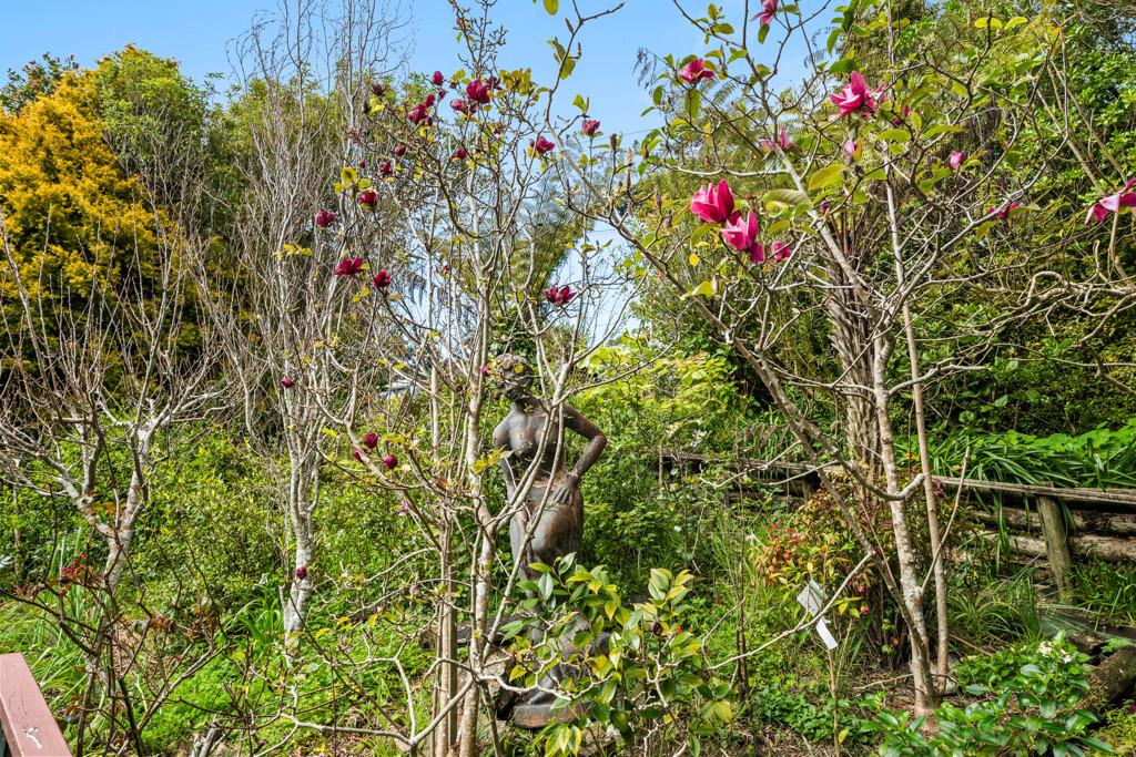 The home's north-facing aspect floods the interiors with sunshine, while a charming fireplace adds warmth and ambience during cooler months. Surrounded by a mature garden with fruit trees, flowering bulbs, and native plantings, the property is a haven for birdlife. Wake to the calls of kaka, kereru and tui.