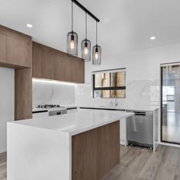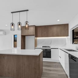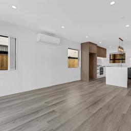 Open-plan living area with a modern kitchen, dining, and lounge that flows seamlessly outdoors, ideal for entertaining.