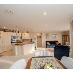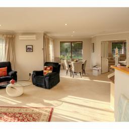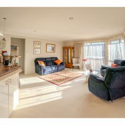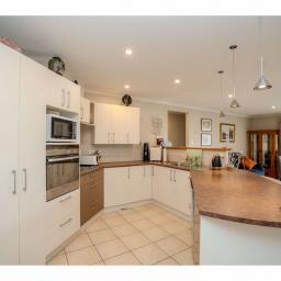 The residence features 4 bedrooms and 2 bathrooms, with a recently re-capped concrete tile roof and plenty of garaging – both double and single, internally accessed and generous in size. Inside, the layout provides a large open-plan kitchen/dining/lounge area plus a separate lounge for flexible living.