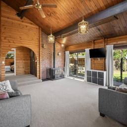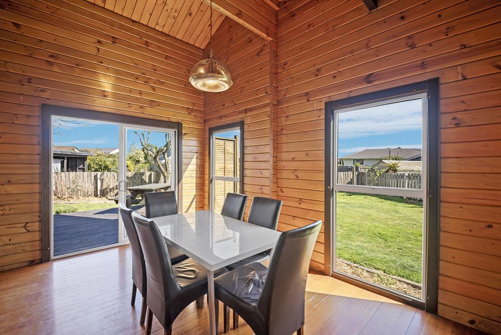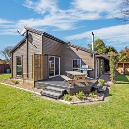 The property offers a diverse floor plan, with a galley kitchen that leads through into a separate dining area and through to a large sunken lounge with a woodburner and ceiling fan for heat distribution. The entire home is double-glazed, ensuring comfort and energy efficiency throughout. Three spacious bedrooms tick the accommodation boxes, while a separate second living area could also be utilised as a fourth bedroom studio space. The family bathroom is en-suited to the master bedroom, offering practicality and convenience. Both the dining and living areas have an instant connection to the outdoor spaces, creating the ultimate indoor/outdoor flow that families love.