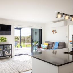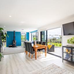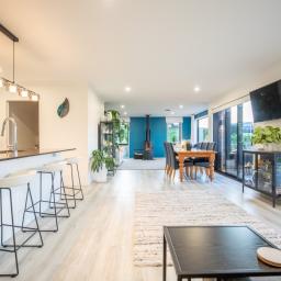 This striking Golden Homes build sets the benchmark for modern Raglan living, offering a perfect blend of luxury, comfort, and uninterrupted views. Positioned to capture both sunrise and sunset, the home looks out across multiple aspects, ensuring every hour of the day feels like a masterpiece framed by nature.