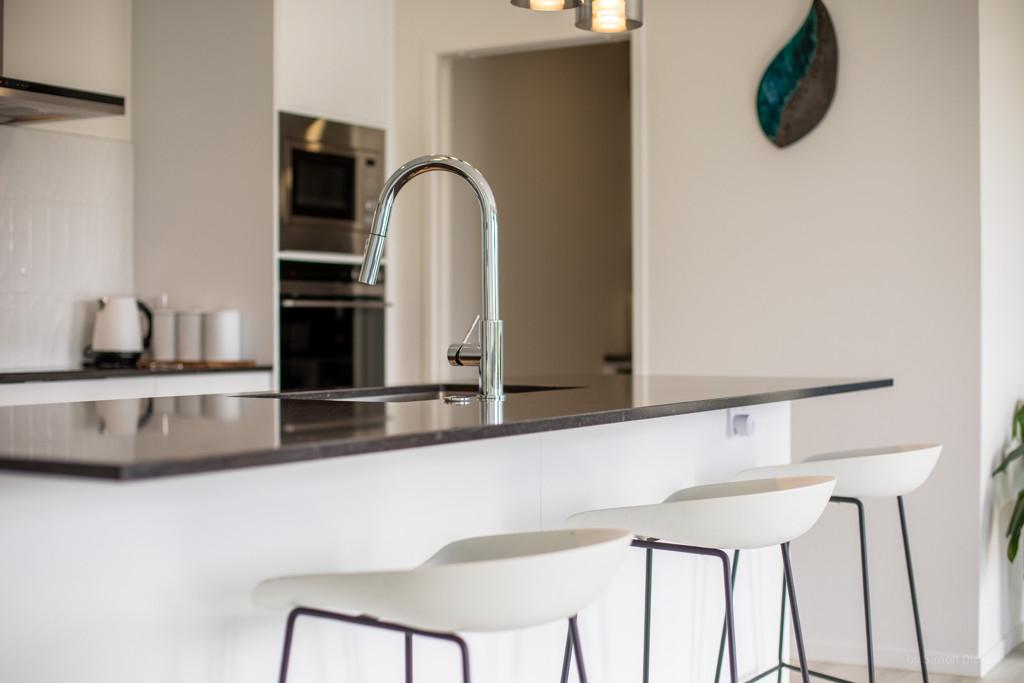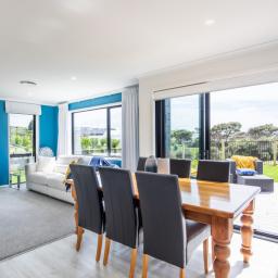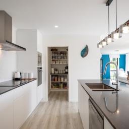 The heart of the home is the open plan kitchen, dining, and living zone where large windows and sliders flood the space with natural light. A stylish kitchen with a scullery anchors the space, keeping the practical elements neatly tucked away while ensuring the cook remains part of every conversation. Both formal and casual living areas connect seamlessly to the outdoor entertaining spaces, inviting gatherings of all sizes and occasions.