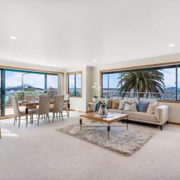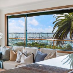 An incredible position with 180-degree uninterrupted views across Westhaven Marina, this remarkable residence captures Auckland's most iconic landmarks-from the Harbour Bridge and Sky Tower to Devonport, and Rangitoto.