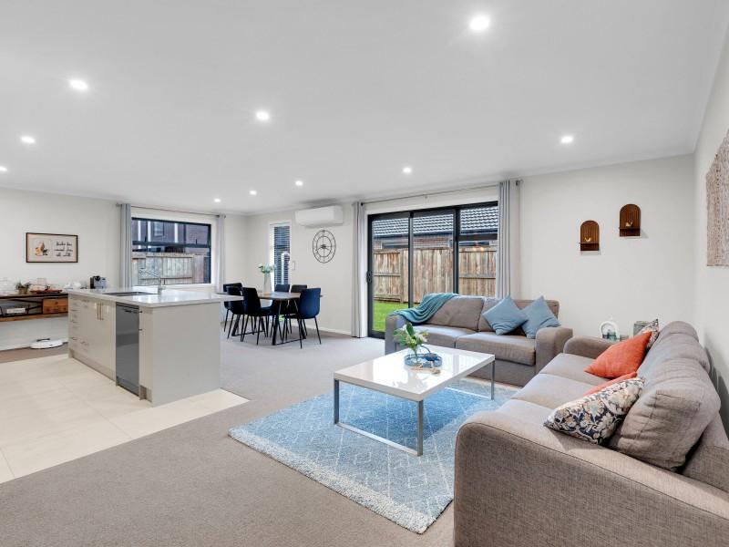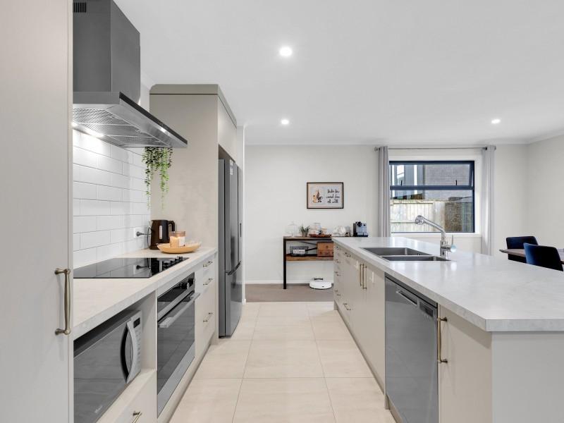 The stylish central kitchen anchors the home, connecting seamlessly to the dining and living zones and flowing outdoors to a sunny, private patio – ideal for alfresco meals, weekend gatherings, or simply unwinding in peace. Everyday comfort is assured with a heat pump for year-round climate control, while solar panels and an EV charger in the double internal-access garage are available as optional extras. The vendors are happy to negotiate a cost for these eco-friendly features with the right buyers.