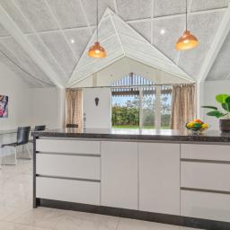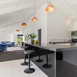 At the heart of the home lies the kitchen, seamlessly positioned in the middle of the open plan living and dining area. With sleek stone benchtops, a central island, and a walk-in scullery with its own sink, it’s designed to bring family and friends together - whether for everyday meals or entertaining with ease.