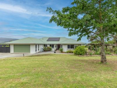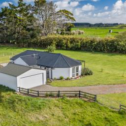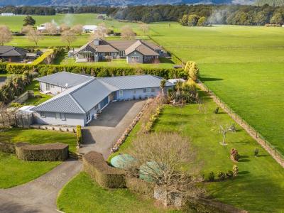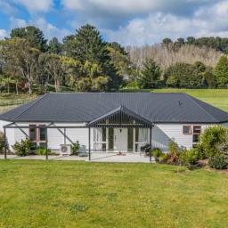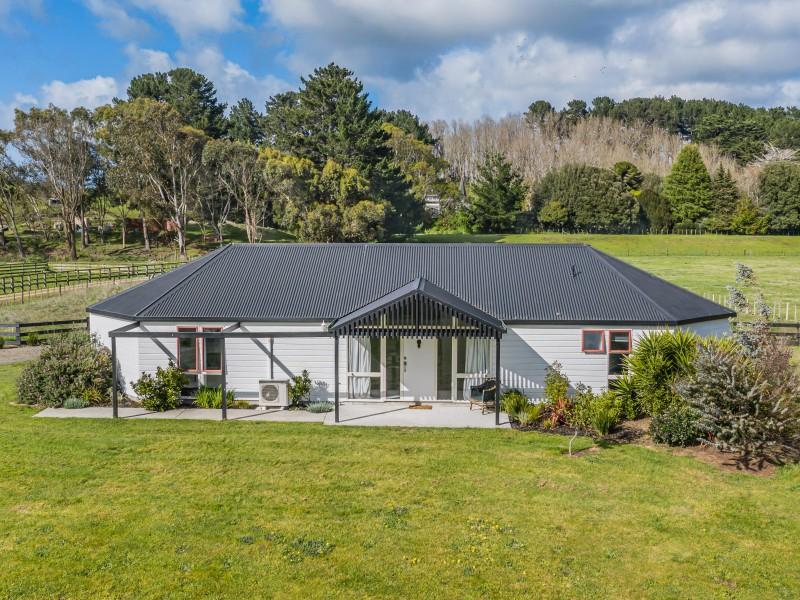 Tucked away on 5,505m of peaceful countryside, this striking architecturally designed home offers the perfect balance of modern comfort and rural charm. Surrounded by farmland and set well back from the road, it’s a private lifestyle retreat where space, sunshine, and serenity abound.