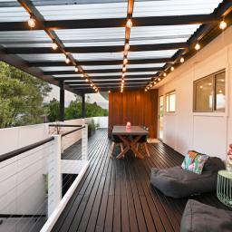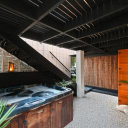 Designed for year-round enjoyment, the home boasts multiple outdoor living options. Dine or unwind on the covered upper deck, enhanced by festoon lighting, or escape to the peaceful garden courtyard, where a water feature creates a calming backdrop. At the end of the day, relax and recharge in the spa.
