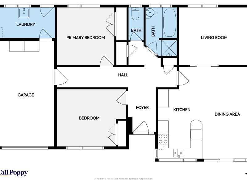 Inside, you’ll find two spacious bedrooms, both with double wardrobes, and a bathroom featuring both a bath and separate shower, plus a separate toilet for added convenience. The open-plan kitchen and dining area flows seamlessly out to the front garden through a ranch slider, creating a sunny spot to relax or entertain.