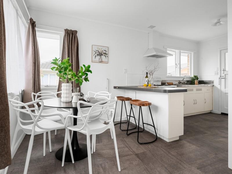 The inviting living room sets the tone, with warm timber floors, fresh neutral décor, and a heat pump to ensure year-round comfort. Flowing easily through to the dining and kitchen zone, the layout offers everyday functionality with plenty of room for family meals or entertaining guests.