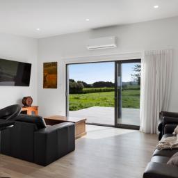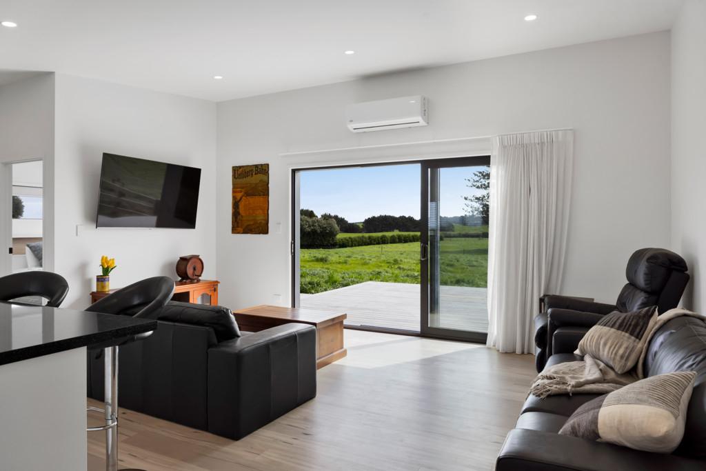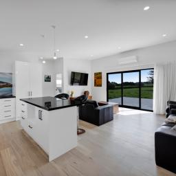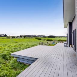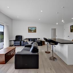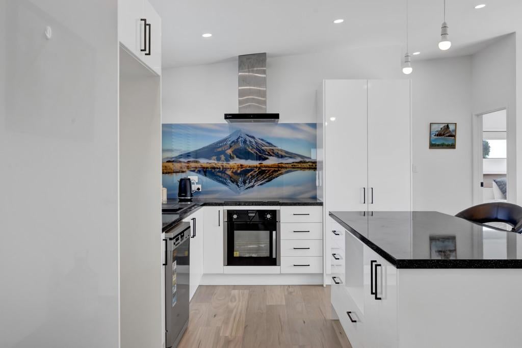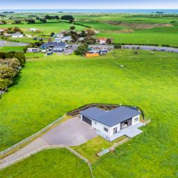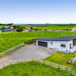 The 2022 new-build home features a modern mono-pitched design with three bedrooms, including a master suite with ensuite and walk-in robe. Stylishly finished throughout, it also offers an attached double garage. Enjoy views out to the coastline, surrounding hills, and Mount Taranaki from this elevated setting. Indoor/outdoor flow is enhanced by the expansive 70m² deck - perfect for entertaining or relaxing in the peaceful rural surroundings.