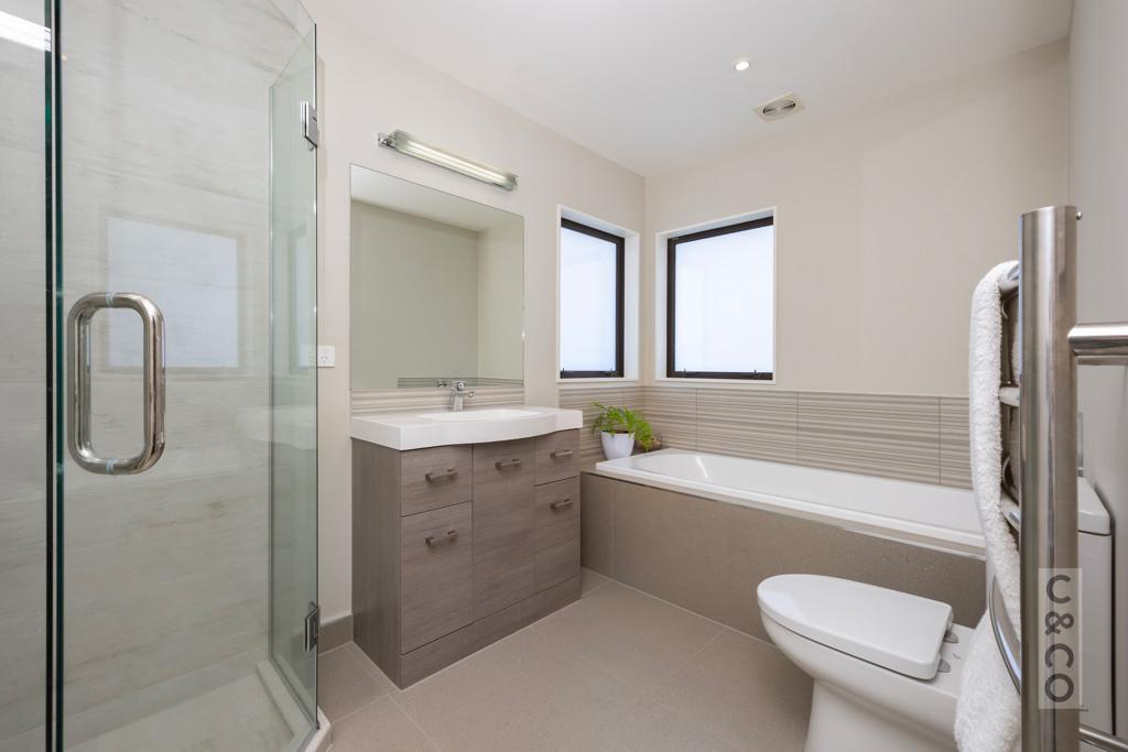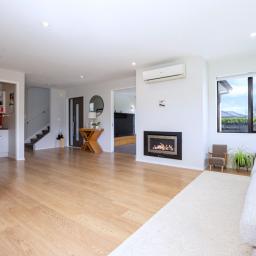 Upstairs, the outlook takes in green surrounds, giving you that relaxed semi-rural feel while still being close to everything. The bedrooms are spacious and comfortable, with the main suite offering its own balcony, ensuite, and walk-in wardrobe. Modern bathrooms with underfloor heating, a gas fire, and ducted air conditioning ensure comfort all year round.