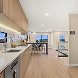 The middle level is the main hub of everyday living, featuring a modern open plan kitchen with quality appliances, a breakfast bar, and a seamless connection to the dining area. A deck is also accessible from the kitchen, a handy spot for a few raised planter boxes, so fresh herbs and greens are always within easy reach while preparing meals. Two additional bedrooms and a stylish family bathroom complete this level.