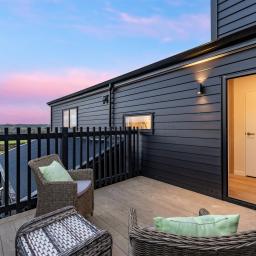 Bathed in natural light, the sun-filled living area on the upper-level invites relaxation and connection. Sliding doors open onto a sunny deck, a lovely spot to enjoy your morning coffee or unwind with family and friends. The master suite is also located here, offering a private retreat with its own ensuite and walk-in wardrobe.