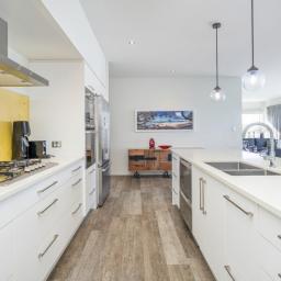 > lovely modern sleek & stylish kitchen with engineered stone island bench-top & quality appliances: easy, practical & convenient