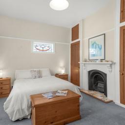Inside, discover three generous double bedrooms, including a master of impressive size. The ornate, non-functional fireplace adds historic elegance, complemented by ample storage. A fourth room flexes as a bedroom or living space, opening to a private courtyard retreat.