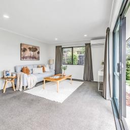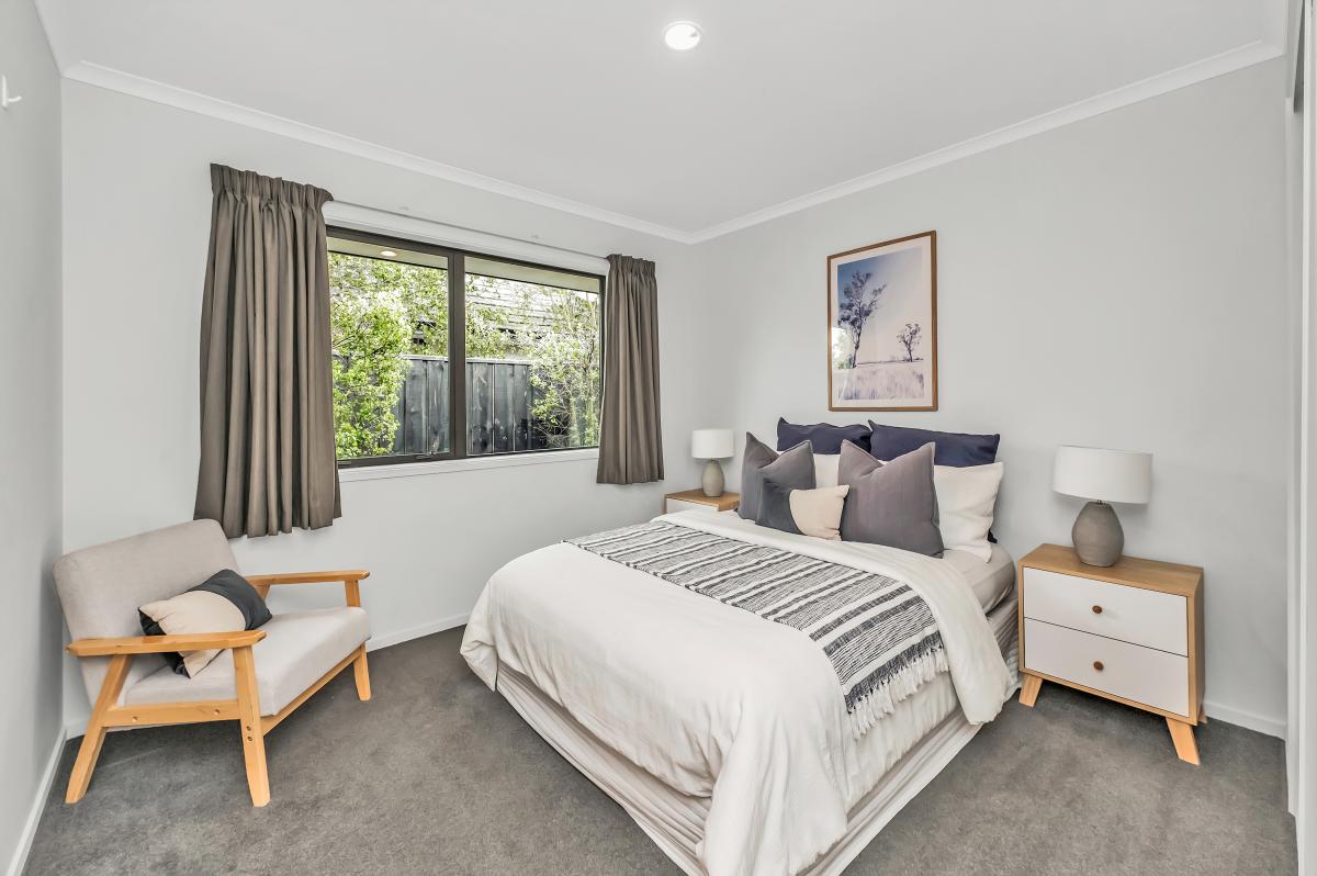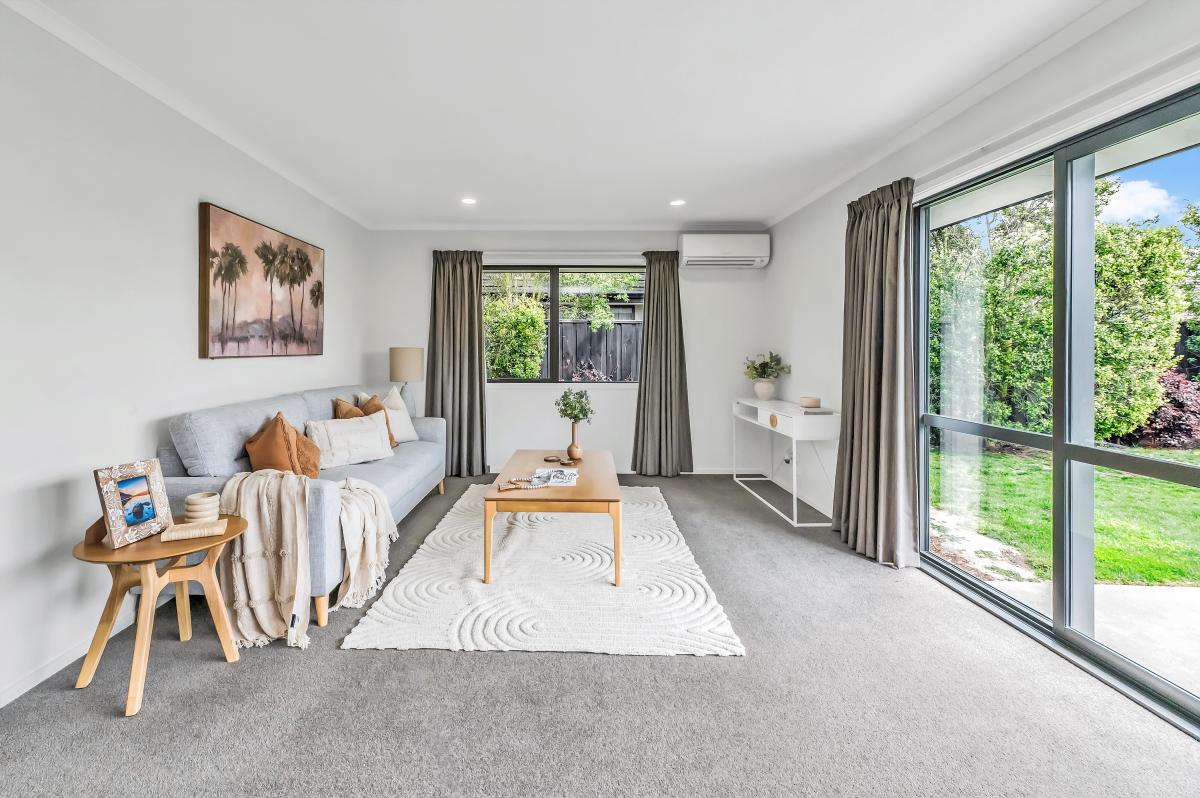 Classically styled and constructed using time-tested materials, the dwelling is well-oriented for sun, and its light-filled spaces are bolstered by neutral hues and a cosy heat pump.