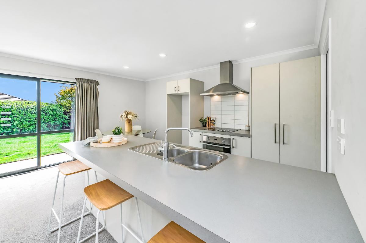 Sensibly arranged, the interior features free-flowing living which spills out to the patio and neat, fully fenced grounds via convenient ranch sliders. Partnering this hub is an efficient open plan kitchen with a practical breakfast bar catering to casual meals on the run.