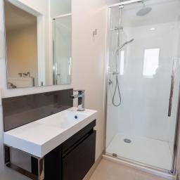 Upstairs, two generous bedrooms are complemented by two beautifully finished underfloor heated bathrooms, including a master ensuite. The thoughtful design ensures comfort and privacy, while double glazing, insulation and a heat pump keep the home cosy year-round.