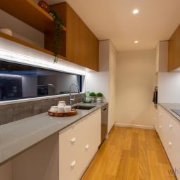 - Crafted finishes: timber cabinetry, stone surfaces, LED details