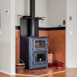 The home itself is comprised of a large kitchen, dining and living space heated by a wood-burning fire. The kitchen is well-appointed with high-end appliances and has a scullery, useful when entertaining.