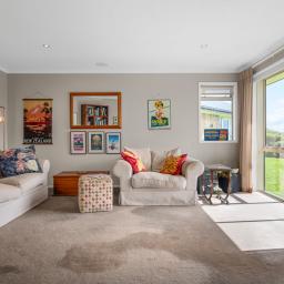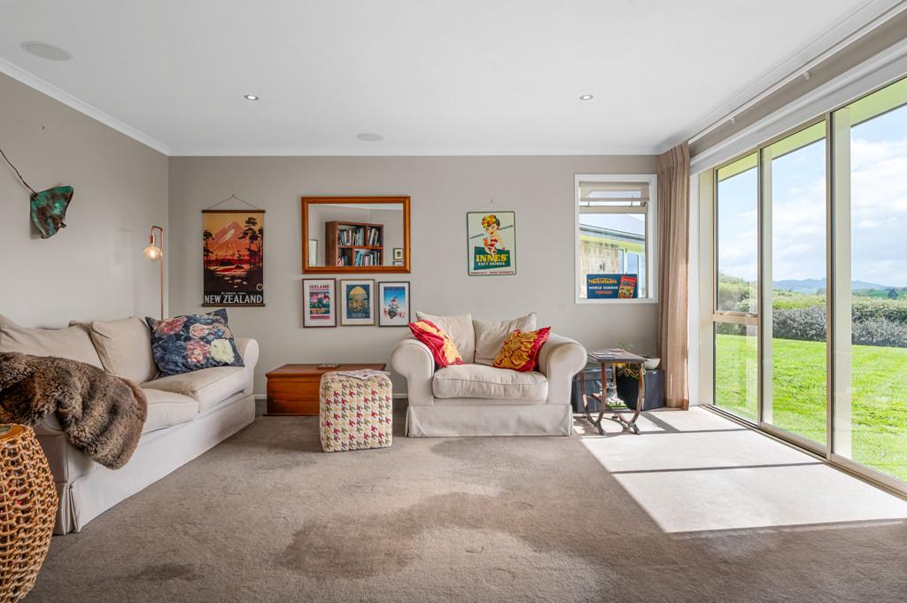 The home is kept cosy year-round with seven heat pumps. The double garage has plenty of extra storage, including a closed-off room which works well for tools. Outside, there are raised garden beds, an abundance of citrus and fruit trees and fenced paddocks. A large Kiwispan shed is perfect to hold all your farm toys.