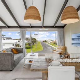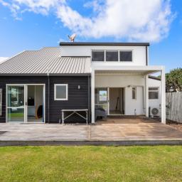 Set on a prime front-site location, 213a Rangi Avenue perfectly blends beachside living with modern comfort. This two story home is designed for relaxed, coastal living, with the sand and surf just a short stroll away, it's the perfect holiday retreat or a permanent seaside haven.