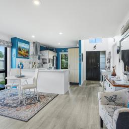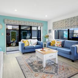 A lovely front lawn and garden add even more charm, while inside the décor has a restful Hampton-style palette, complemented by plank-look flooring for easy care. There's also the comfort of a heat pump and HRV system, ensuring a pleasant environment in every season.