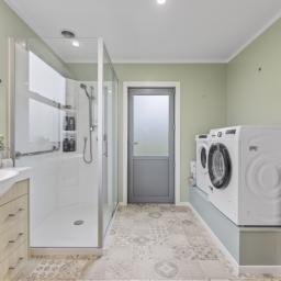 The home features three well-sized double bedrooms, each offering plenty of space and natural light. A recent renovation of the bathroom has brought a fresh, modern feel, with beautifully chosen fixtures and finishes. The bathroom also cleverly incorporates a dedicated laundry area, making the most of the space.
