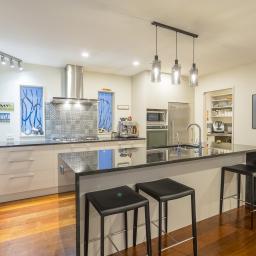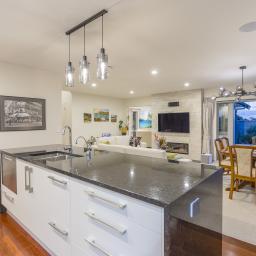Light-filled and meticulously finished, the main home features Kwila timber floors, granite benchtops, a butler's pantry, and Escea gas fire.