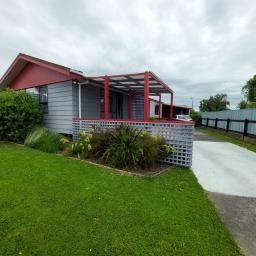 3 Bedroom family home with well fenced section and large garaging/carport. Heatpump & dishwasher. Quiet area. NO PETS.