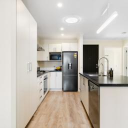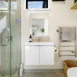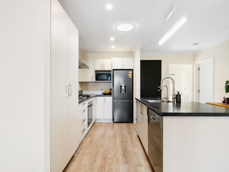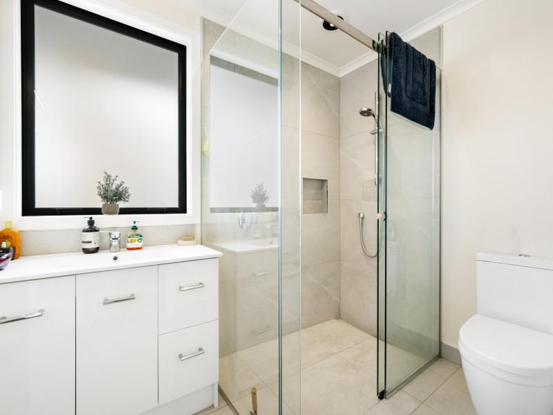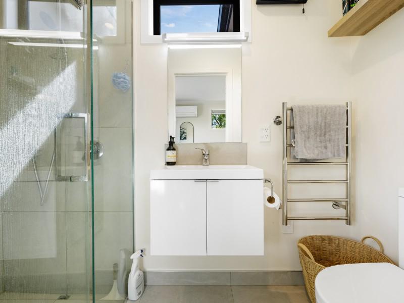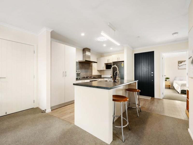 Inside, the hub of the home is the contemporary kitchen, dining and lounge area - designed for easy everyday living and seamless entertaining. The modern kitchen features quality appliances (including the fridge), generous storage, and a great connection to the living area and sun-soaked deck. There's a generous dining nook which can host family dinners or act as a second living or office space - the choice is yours. Two spacious double bedrooms each include built-in wardrobes, while the two tiled bathrooms, including a sleek ensuite off the primary, add a touch of luxury. Comfort is assured year-round with a heat pump in the living area and one in the primary bedroom, as well as under-tile heating in both bathrooms.