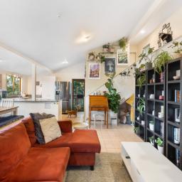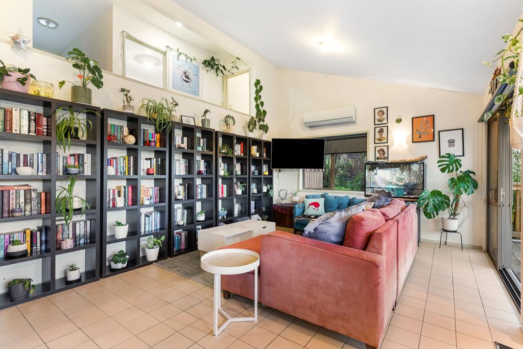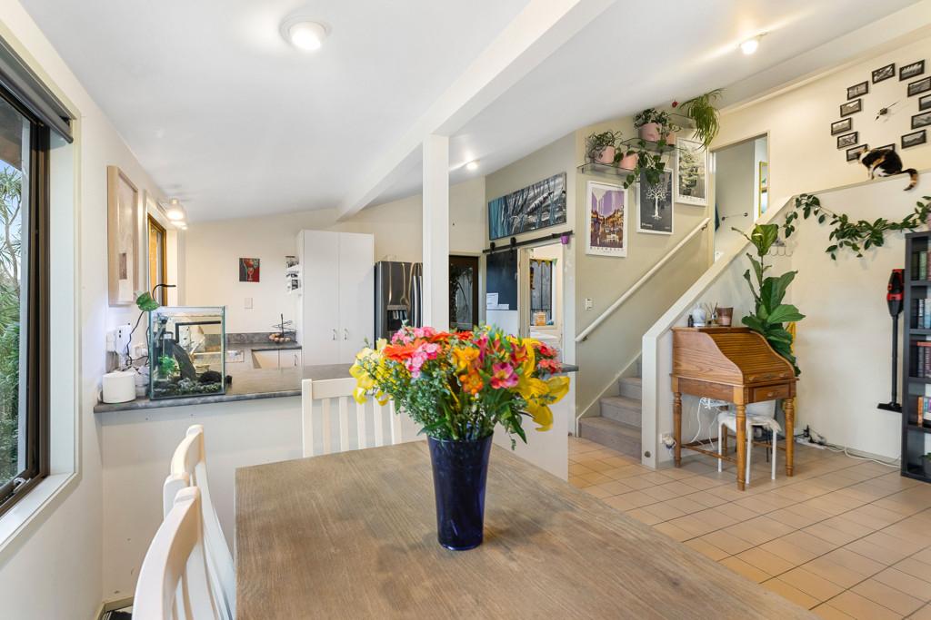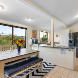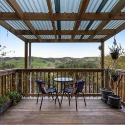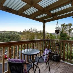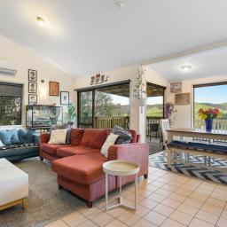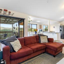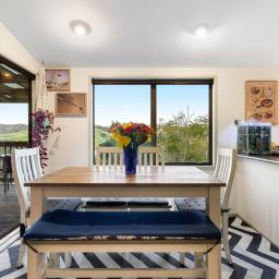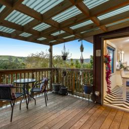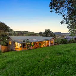 In the morning you can sit on your front deck enjoying a coffee while the sun rises over the stunning north-easterly hillscape. The split level design of this home makes the most of this view with its large windows, and gracefully separates the open-plan living space (complete with hidden reading nook) from the 3 double bedrooms.