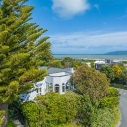 Nestled between Paraparaumu Beach and the golf course, this elevated Art Deco home offers a lifestyle that's both peaceful and connected — with beach access, village cafés, and coastal walks all within easy reach.
