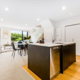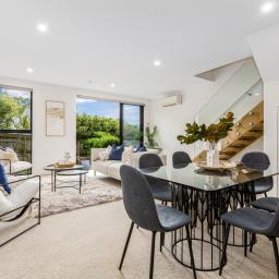 Crafted by Gibbons Co and designed by architects Novak+Middleton, this wider-than-usual townhouse elevates modern living with clean lines, curated finishes and seamless indoor-outdoor flow in a boutique 17 townhouse development. The light-filled ground floor opens to a beautifully landscaped courtyard-perfect for relaxed mornings, summer BBQs, and easy entertaining.