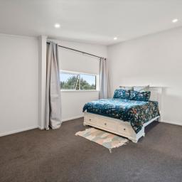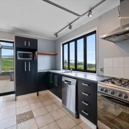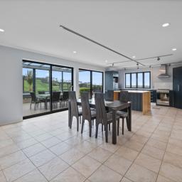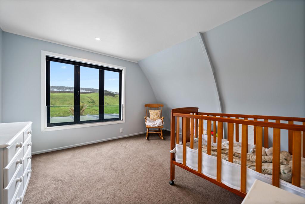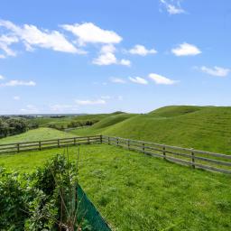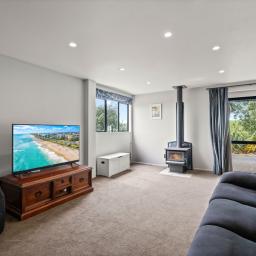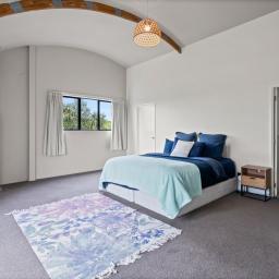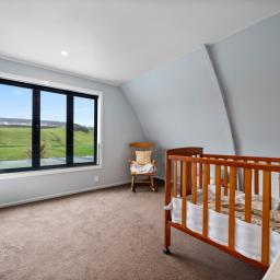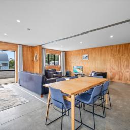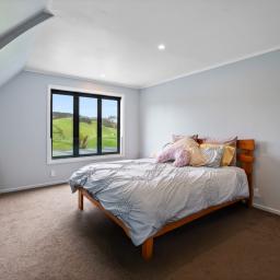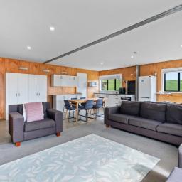 Designed to capture expansive landscape views with large windows, barn-style construction, and a spacious layout. It features four bedrooms, with one downstairs and three upstairs, including a master bedroom large enough for multi-purpose use, complete with a walk-in wardrobe and ensuite. The open-plan kitchen and dining area flows seamlessly to a warm, covered outdoor space, ideal for all-season use. The separate living space is heated by a wood burner during the winter, and the clever design of this home means it captures all day sun from every angle.