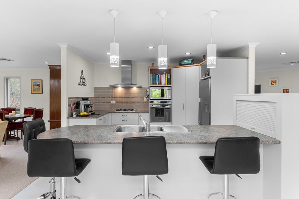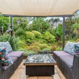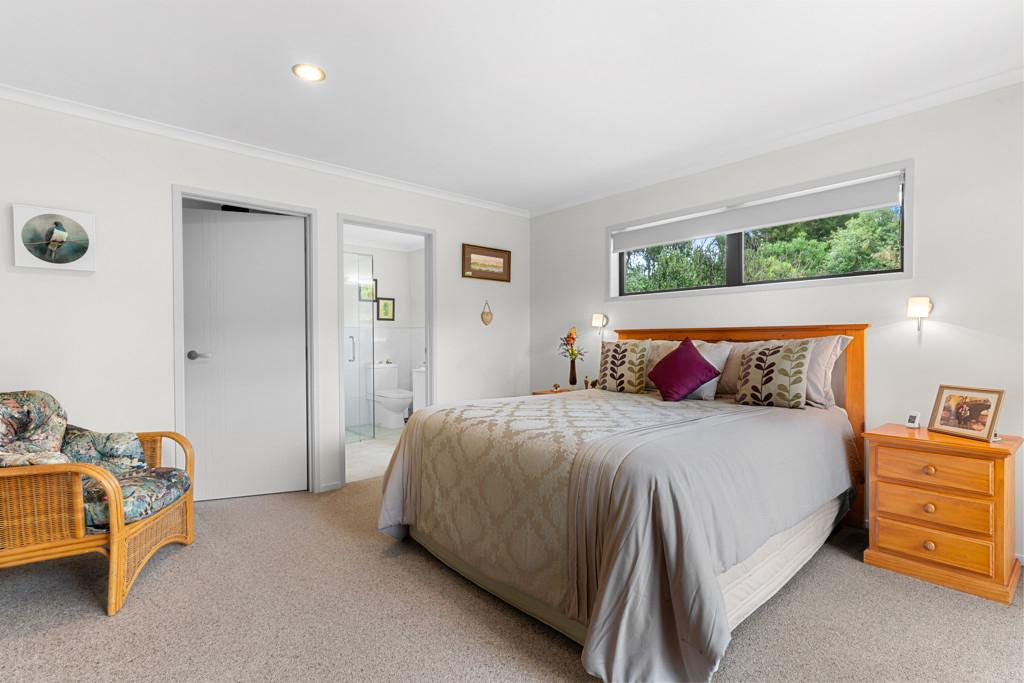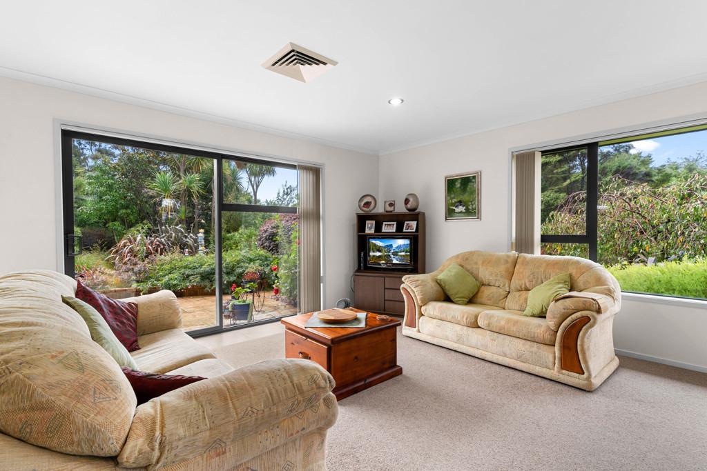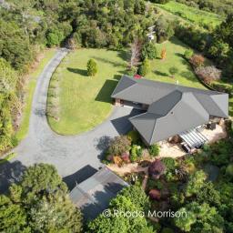 A unique property up a tree-lined driveway boasting absolute privacy. Flanked with natural beauty of native forest including Kauri and Rimu trees to admire along with birdsong. Designed for relaxation and entertaining, this 237 sqm solid warm home is spacious and seamlessly attuned to outdoor living. A curved entrance foyer leads to either living areas, although some of you will be enticed to explore the garden tracks from the word go! Bi-fold doors offer easy access to undercover patio from the island kitchen. Two living areas give everyone room to spread. Three spacious bedrooms and family bathroom with separate toilet comfortably accommodate family and guests. The master bedroom has its own ensuite, walk-in robe, plus access to patio. There is an office (could be 4th bedroom), laundry is in large insulated garage area.