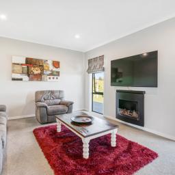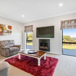 There are four spacious double bedrooms, two well-appointed bathrooms (including a master ensuite), and multiple living areas - including a soundproof media room with a cozy biofuel fireplace, perfect for movie nights or quiet downtime. Year-round comfort is ensured with double glazing, a heat pump, a roof fan, and internal access garaging.