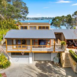 Experience the magic of coastal living with this waterfront home, perfectly positioned above the tranquil waters of Whangateau Harbour. Nestled in the sought-after Tramcar Bay, this property offers the rare combination of privacy, space, views, and private access to the water - ideal for swimming, kayaking, or simply soaking in the serenity of the bay and the ocean behind Omaha Spit.